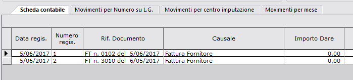 DEBITI COMMERCILI-FORNITORI TERZI ITALIA, interrogazione scheda contabile dalla scheda contabile è possibile visualizzare i documenti caricati ed eventualmente apportare delle variazioni se necessario.