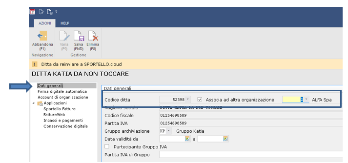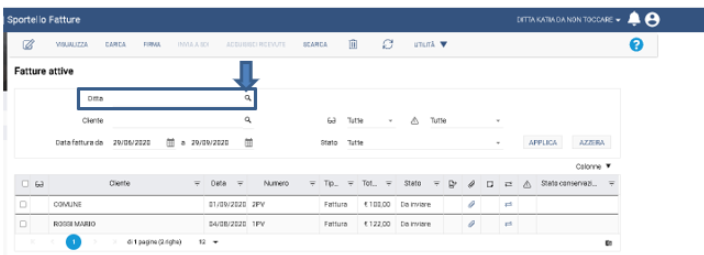 >>> L’account che accederà vedrà in Sportello.cloud le fatture di entrambe le ditte – sarà necessario impostare i filtri sul campo Ditta per vedere le fatture separate <<<