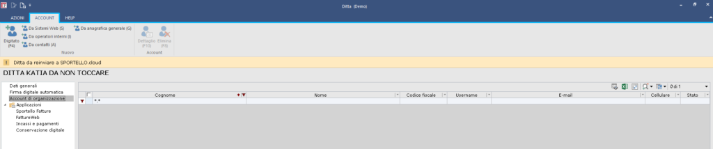 3. Sulla ditta che viene associata non verranno creati account: