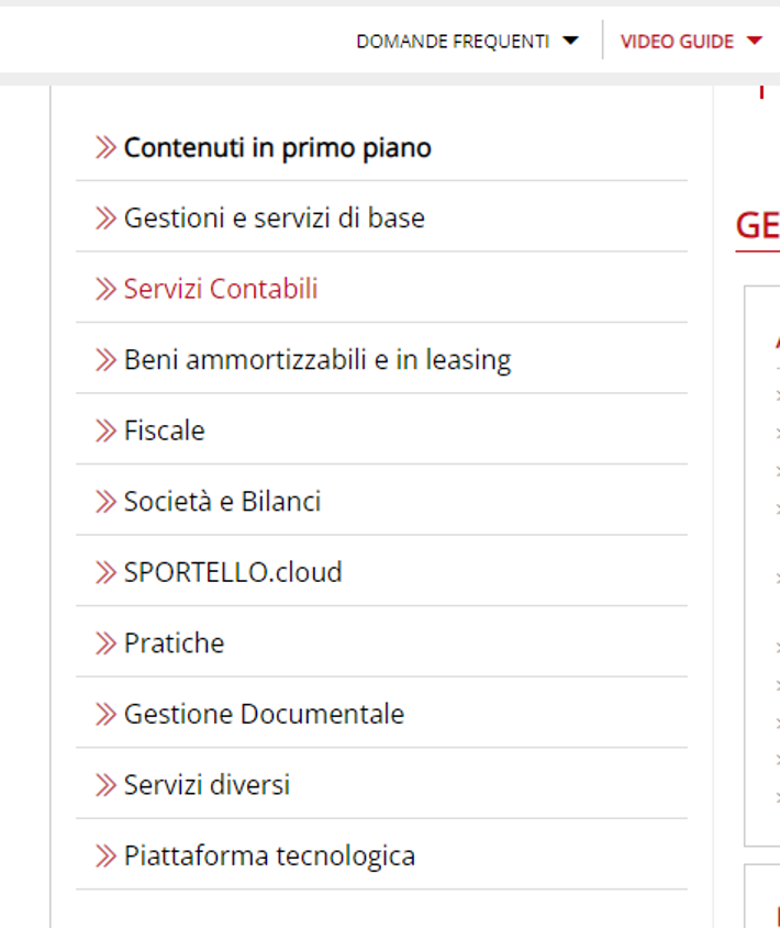 Manuali e guide sono divisi per aree di prodotto o in alternativa dalla specifica videata che state utilizzando, come da esempio: