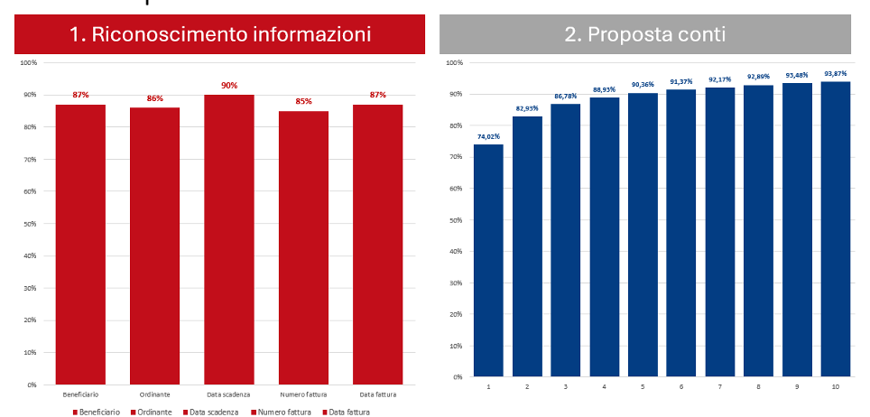 Dopo circa un anno dal rilascio della prima versione l’algoritmo di intelligenza artificiale è in grado di riconoscere con un’accuratezza prossima al 90% i principali elementi presenti negli estratti conto bancari. Tra questi elementi figurano il beneficiario, l’ordinante, la data di scadenza, il numero di fattura e la data della fattura. Grazie al contenuto dell’aggiornamento, gli operatori contabili possono ora abbinare le partite cliente-fornitore.