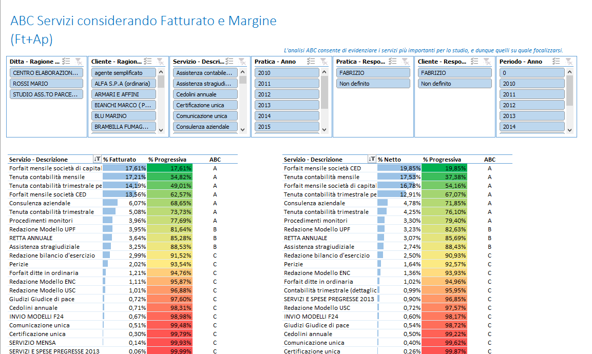 L’analisi ABC consente di evidenziare i servizi più importanti per lo studio, e dunque quelli su quale focalizzarsi.
