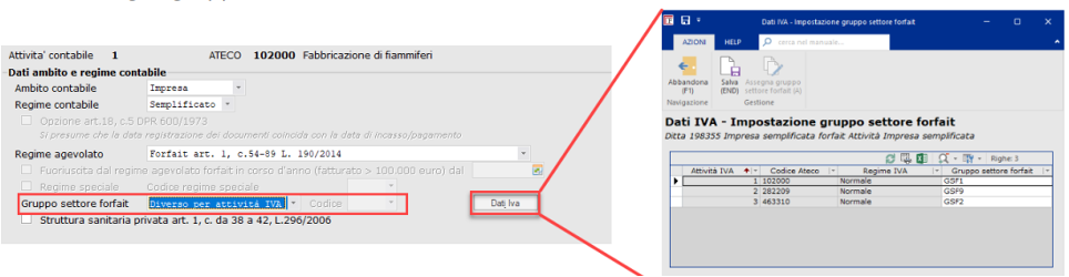 La possibilità di gestire su unica attività contabile, più attività IVA con gruppi settore forfait differenti, per le ditte in regime agevolato forfait, la Gestione Ditte è stata implementata con la possibilità di configurare su un’unica attività contabile, attività IVA riconducibili a gruppi settore forfait differenti.
